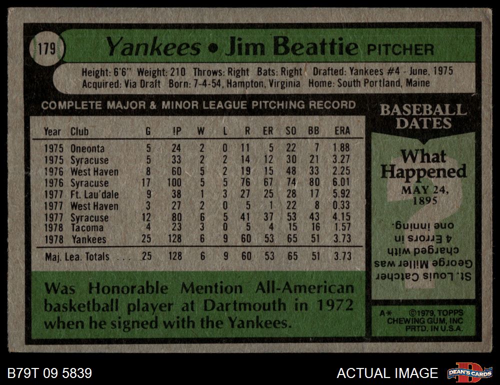 1979 Topps #179 Jim Beattie 1 - POOR