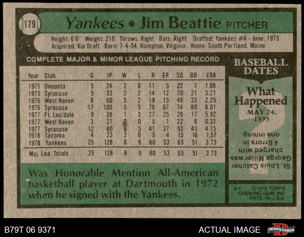 1979 Topps #179 Jim Beattie 4 - VG/EX