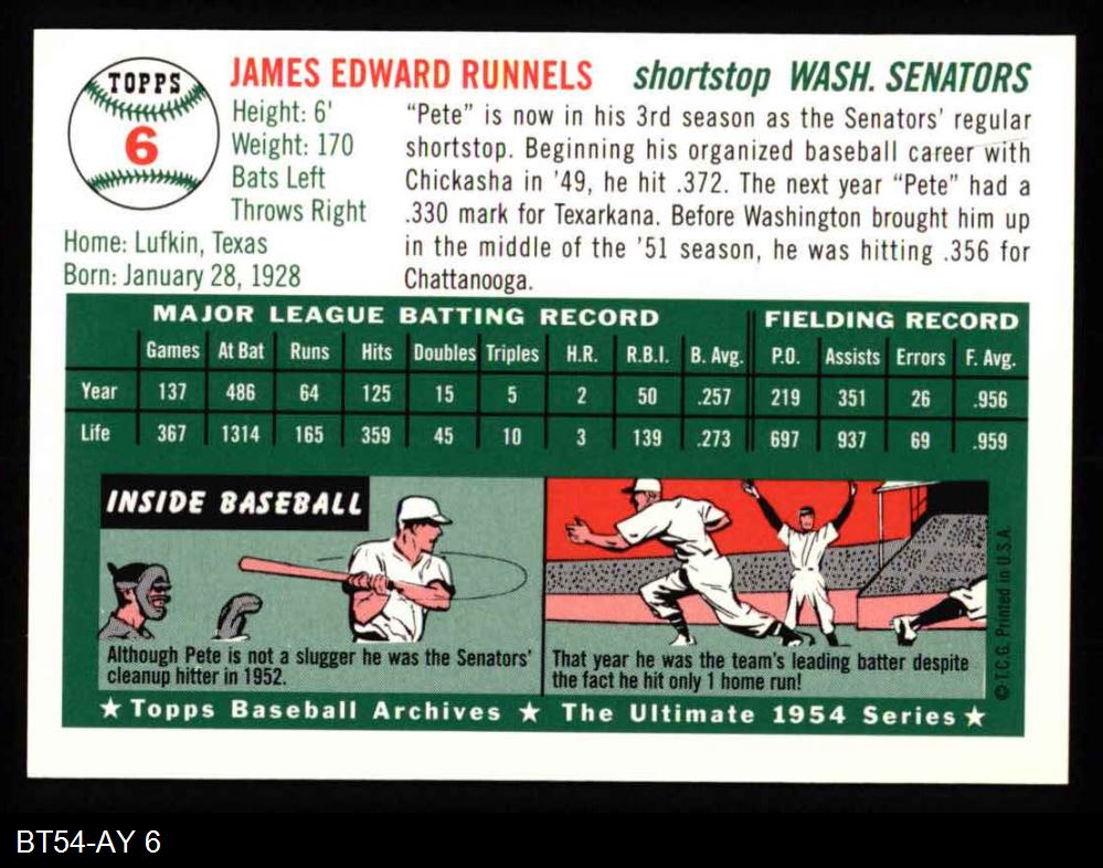 1954 Topps Archives #6 Pete Runnels 8 - NM/MT