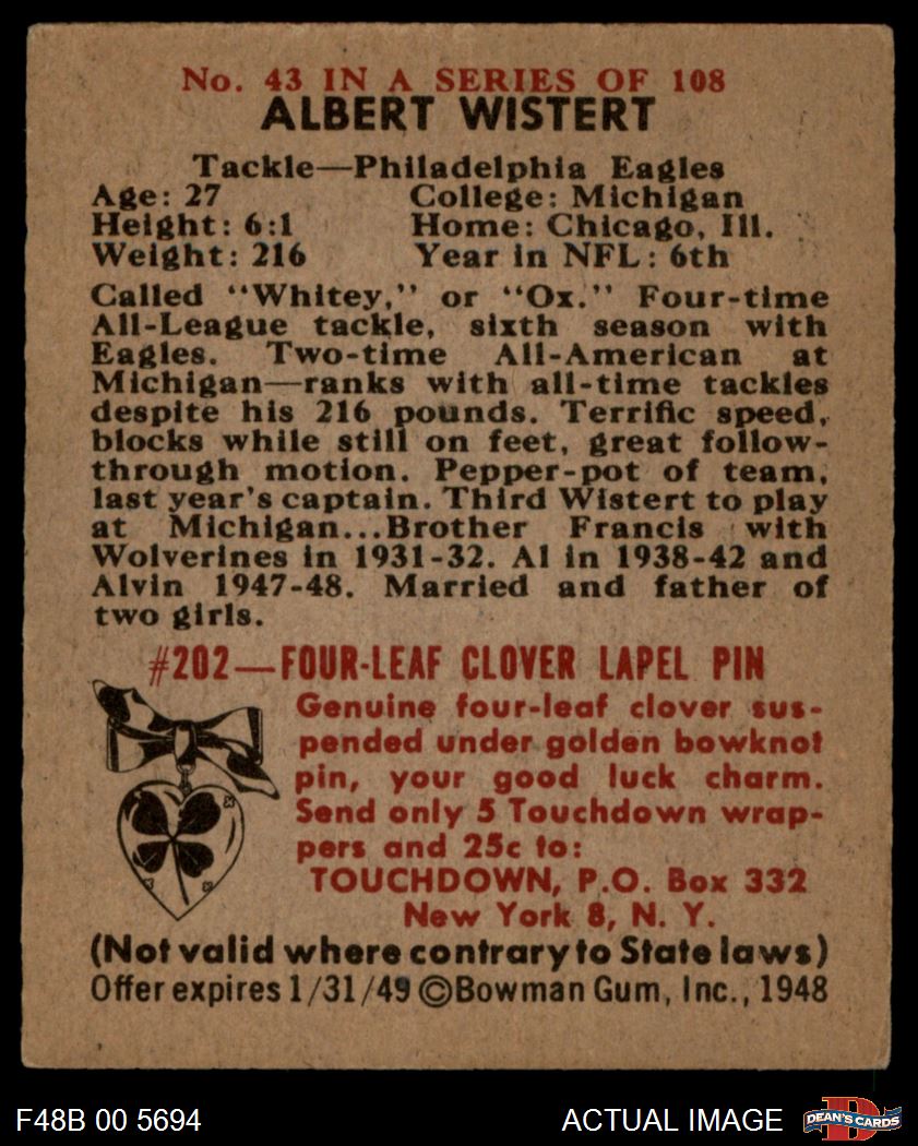 1948 Bowman #43 Albert Wistert 4 - VG/EX