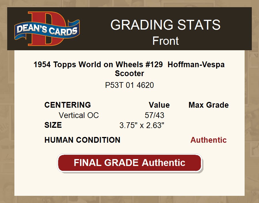 1954 Topps World on Wheels #129 Hoffman-Vespa Scooter AUTHENTIC