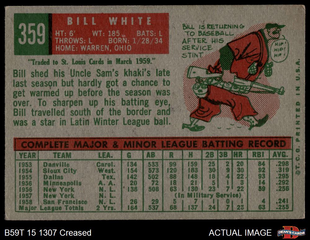 1959 Topps #359 Bill White 2 - GOOD