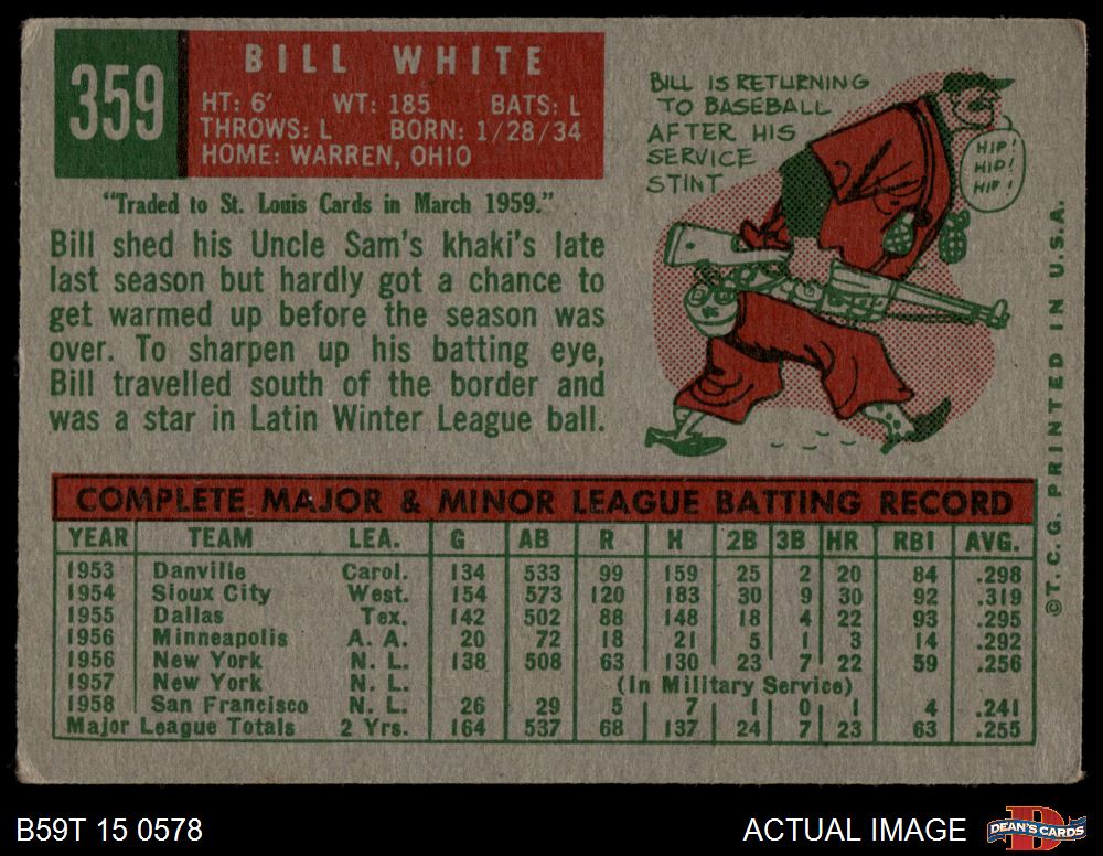 1959 Topps #359 Bill White 3 - VG