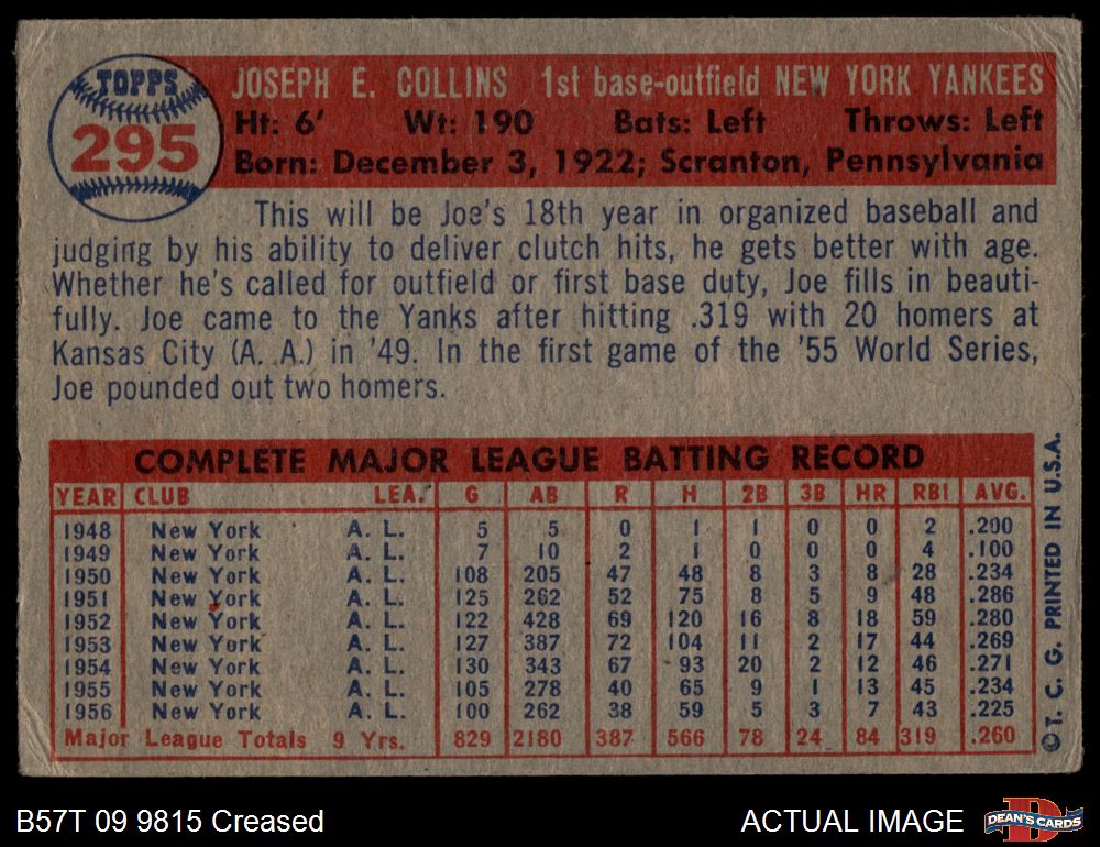 1957 Topps #295 Joe Collins 2 - GOOD