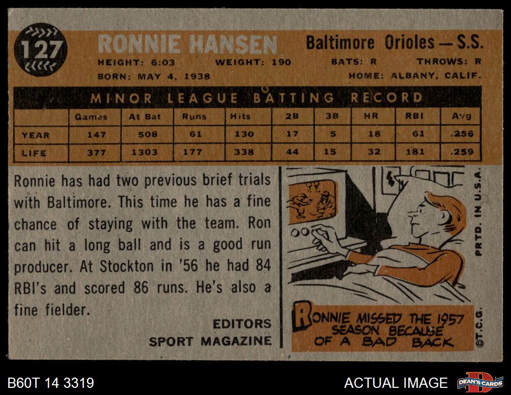 1960 Topps #127 - Ron Hansen Rookie Star 2 - GOOD