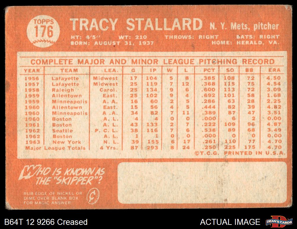1964 Topps #176 Tracy Stallard Front Thumbnail