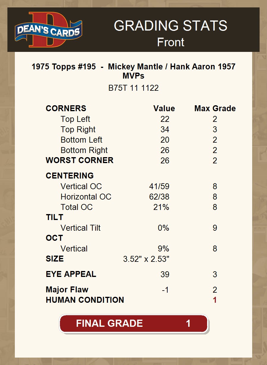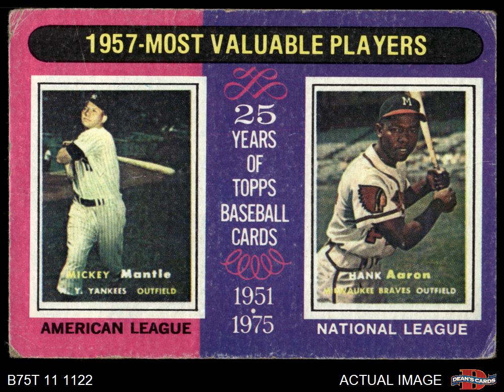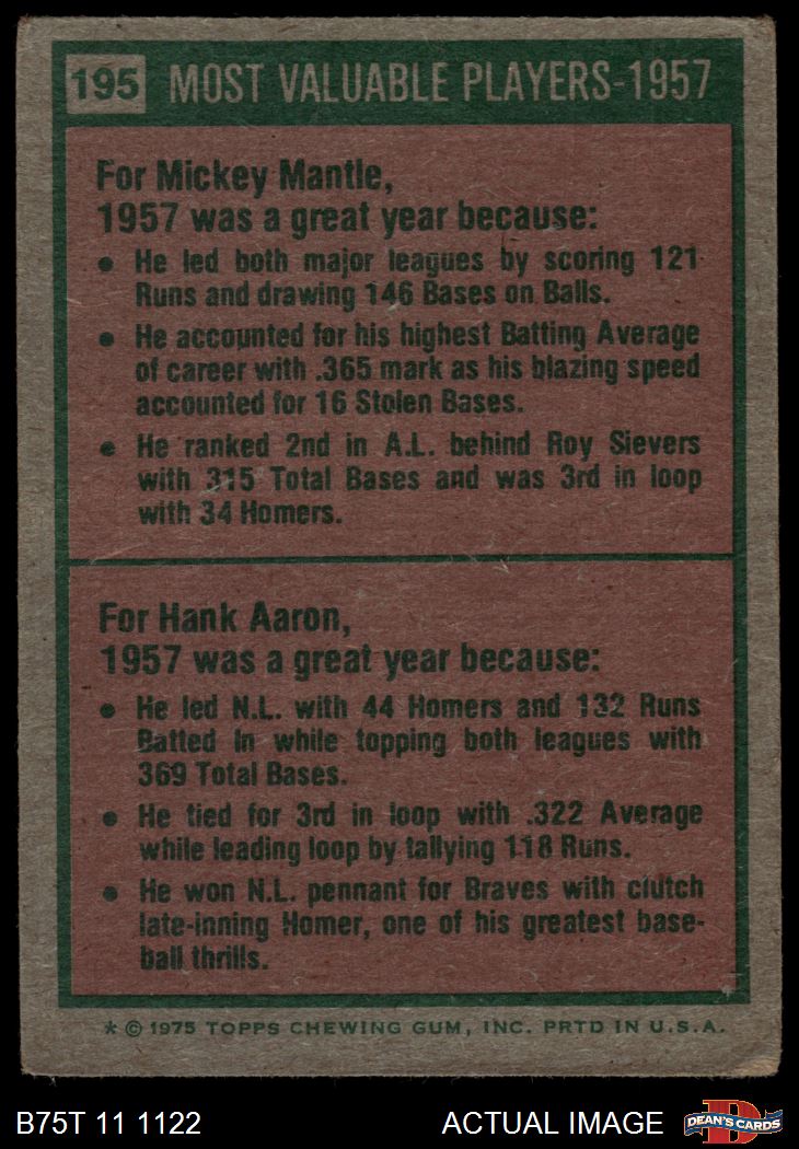 1975 Topps #195 - Mickey Mantle / Hank Aaron 1957 MVPs 1 - POOR
