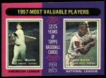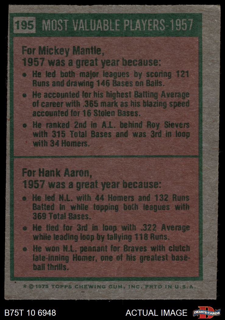 1975 Topps #195 - Mickey Mantle / Hank Aaron 1957 MVPs 3 - VG