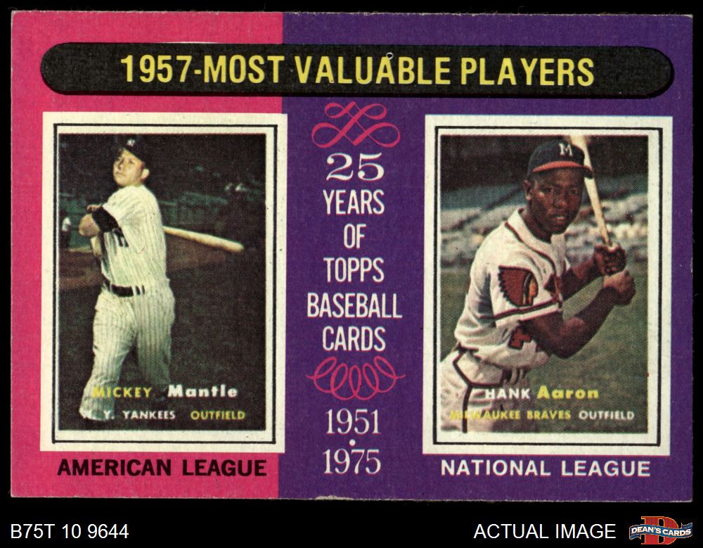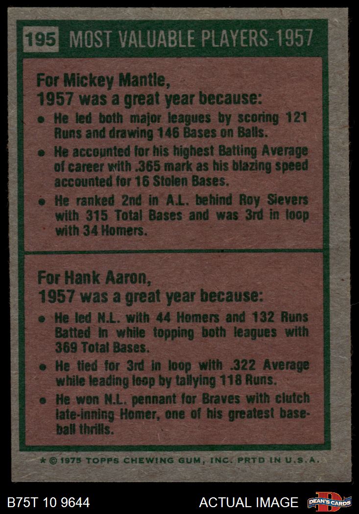 1975 Topps #195 - Mickey Mantle / Hank Aaron 1957 MVPs 5 - EX