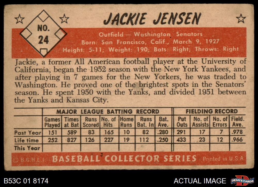 1953 Bowman #24 Jackie Jensen AUTHENTIC