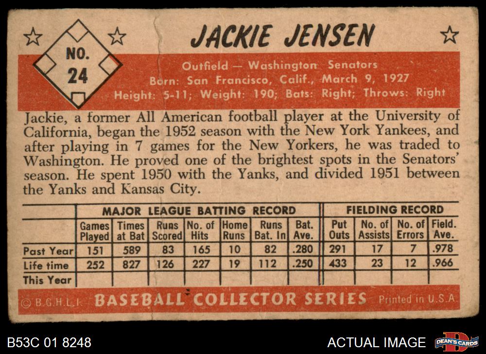 1953 Bowman #24 Jackie Jensen 1 - POOR