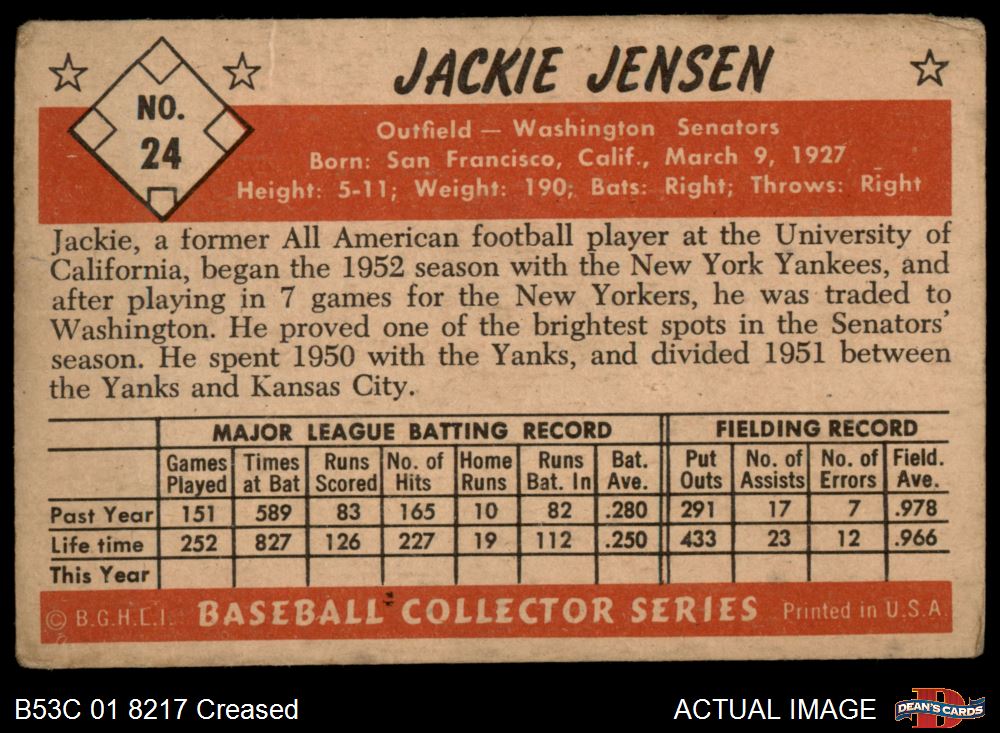 1953 Bowman #24 Jackie Jensen Front Thumbnail