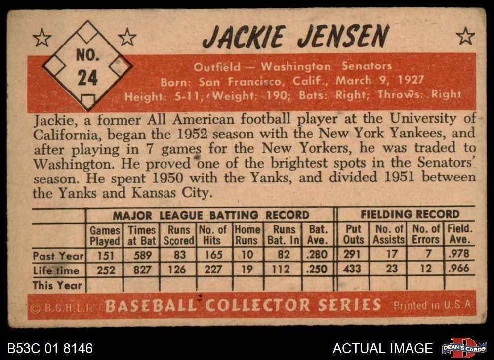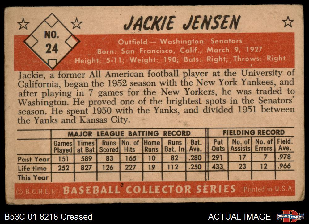 1953 Bowman #24 Jackie Jensen 2 - GOOD