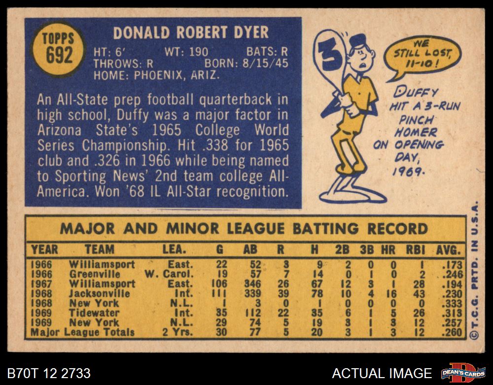 1970 Topps #692 Duffy Dyer 6.5 - EX/MT+