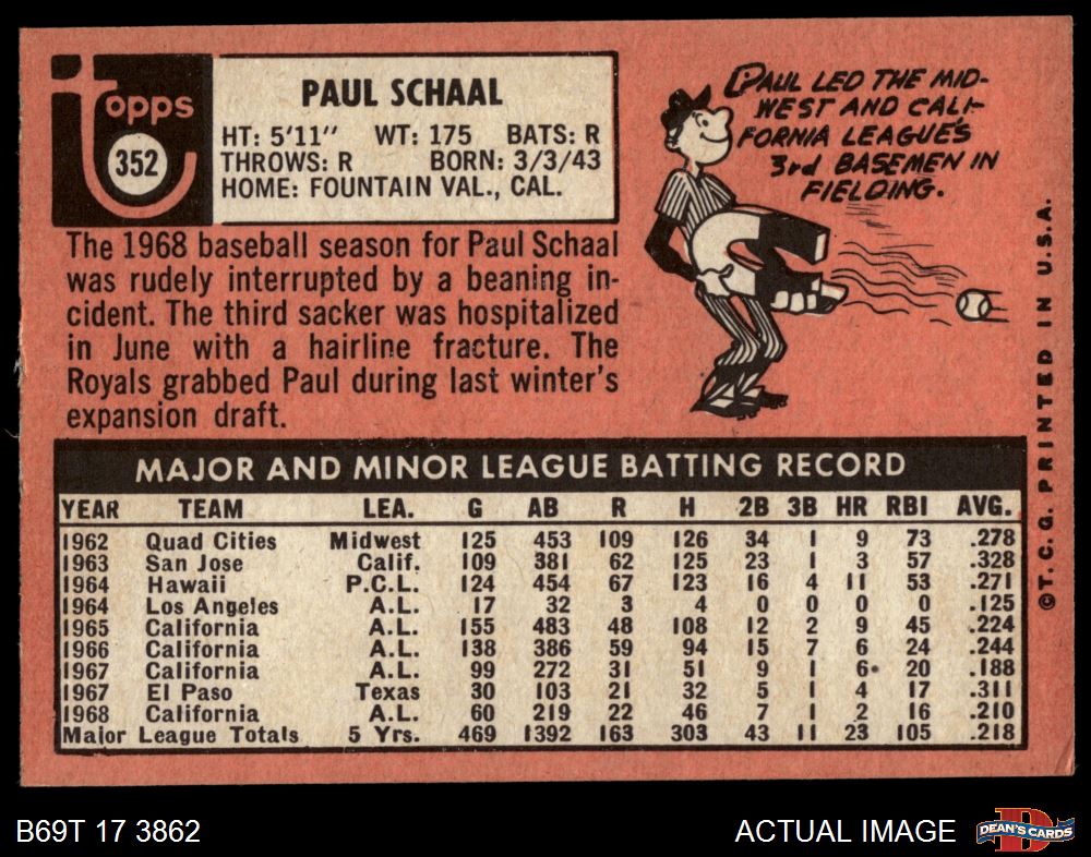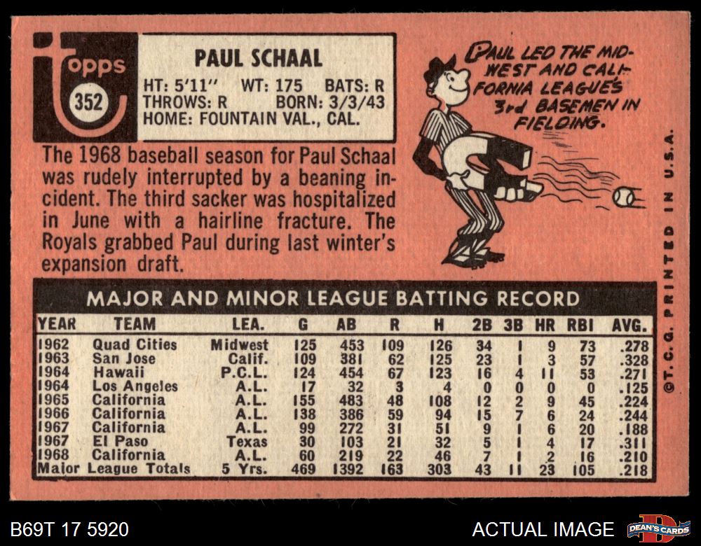 1969 Topps #352 Paul Schaal 4 - VG/EX