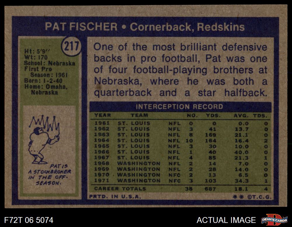 1972 Topps #217 Pat Fischer 7 - NM