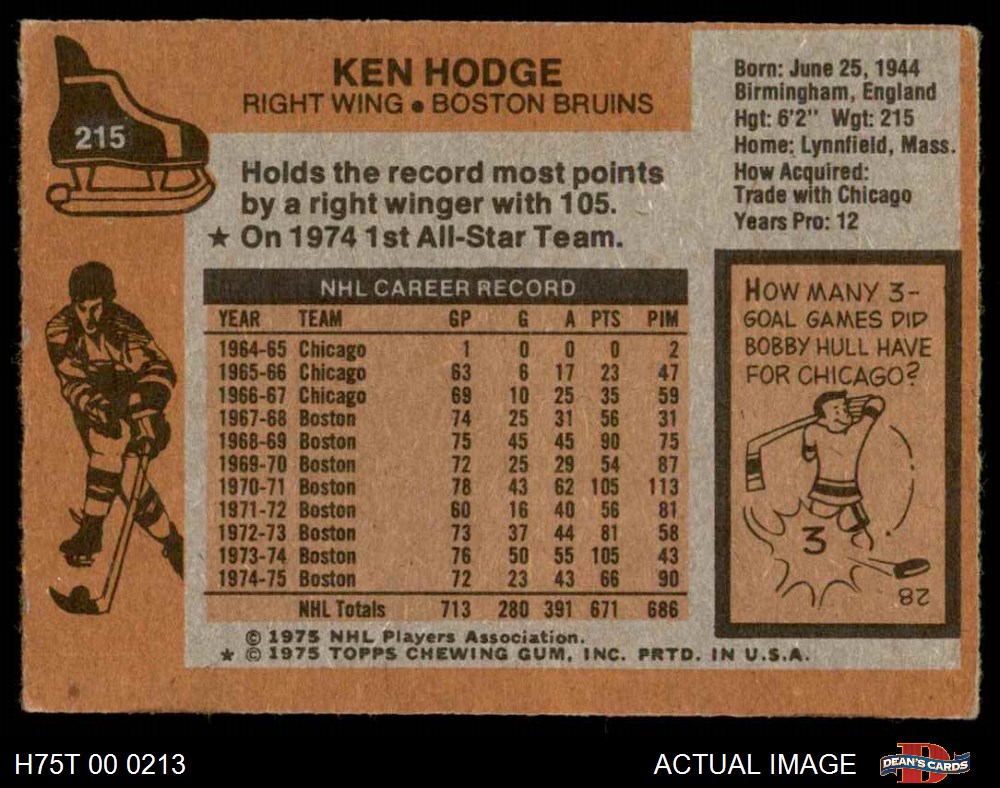 1975-76 Topps Hockey Cards (3,199 available)1975 Topps Bruins (185 available)