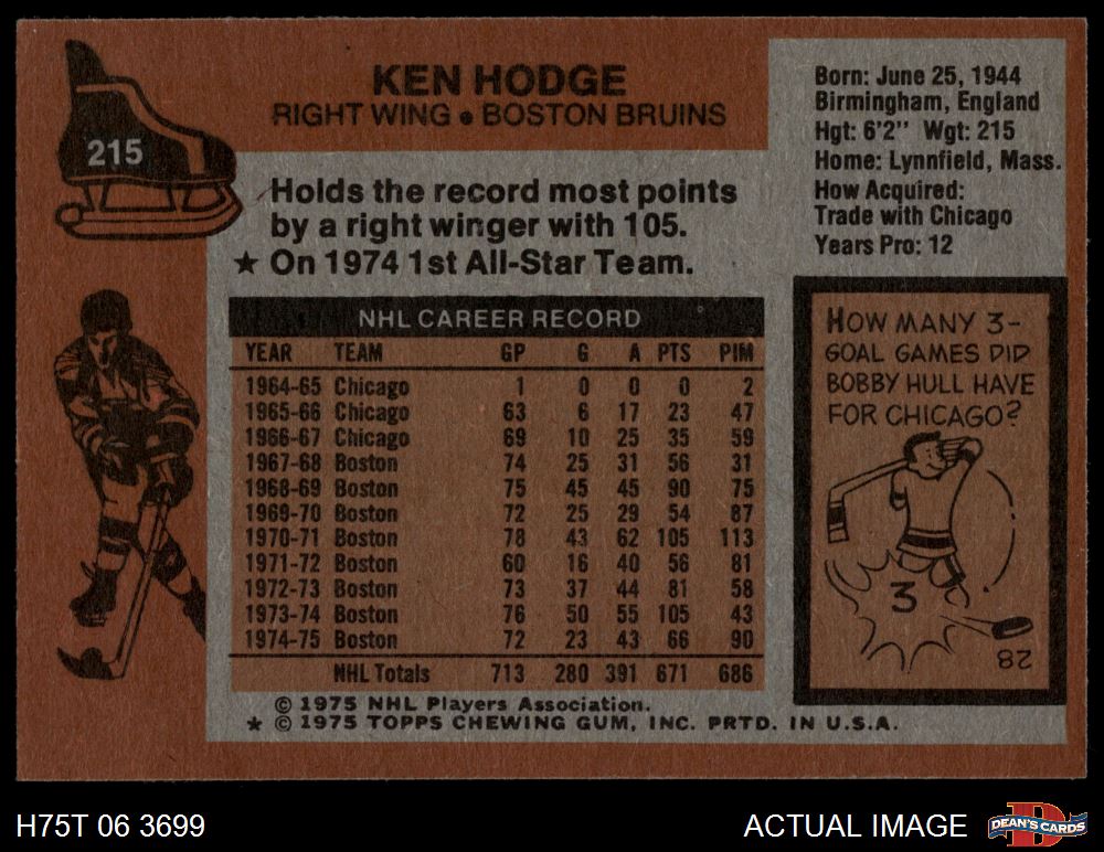 1975 Topps #215 Ken Hodge 7.5 - NM+