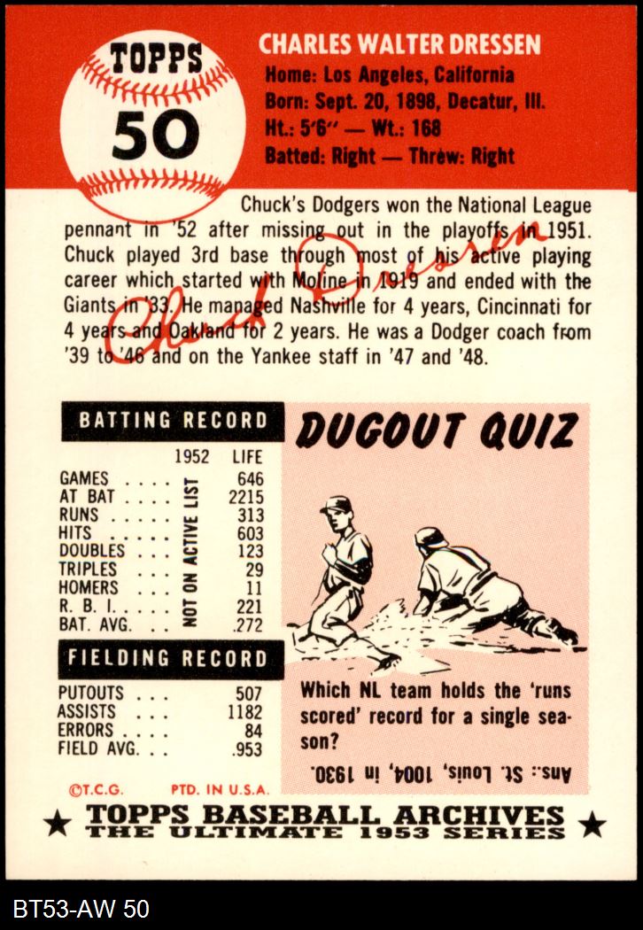 1953 Topps Archives #50 Chuck Dressen 8 - NM/MT