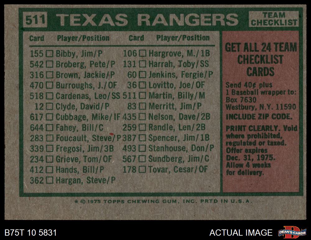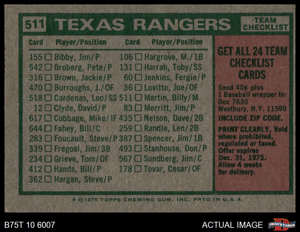 1975 Topps #511 - Billy Martin Rangers Team Checklist 6 - EX/MT
