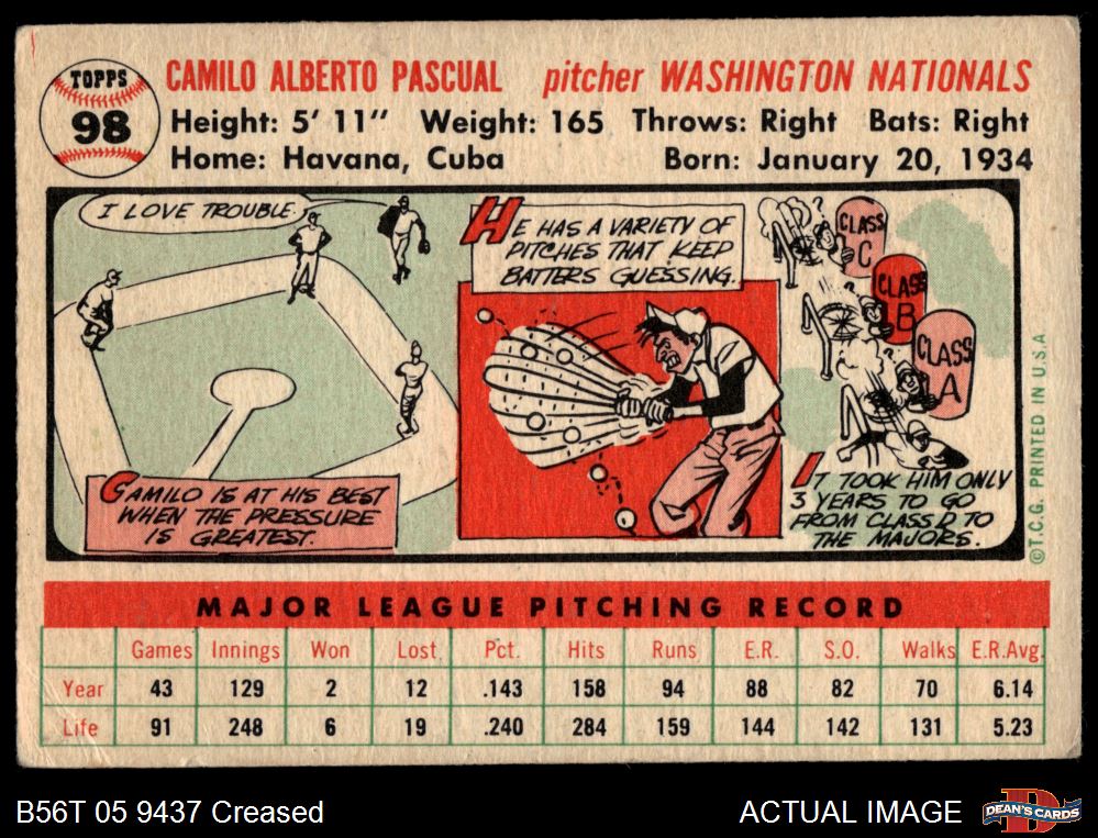 1956 Topps #98 Camilo Pascual 2 - GOOD