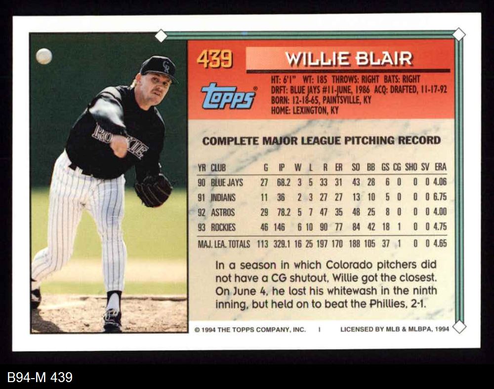1994 Topps #439 Willie Blair 8 - NM/MT