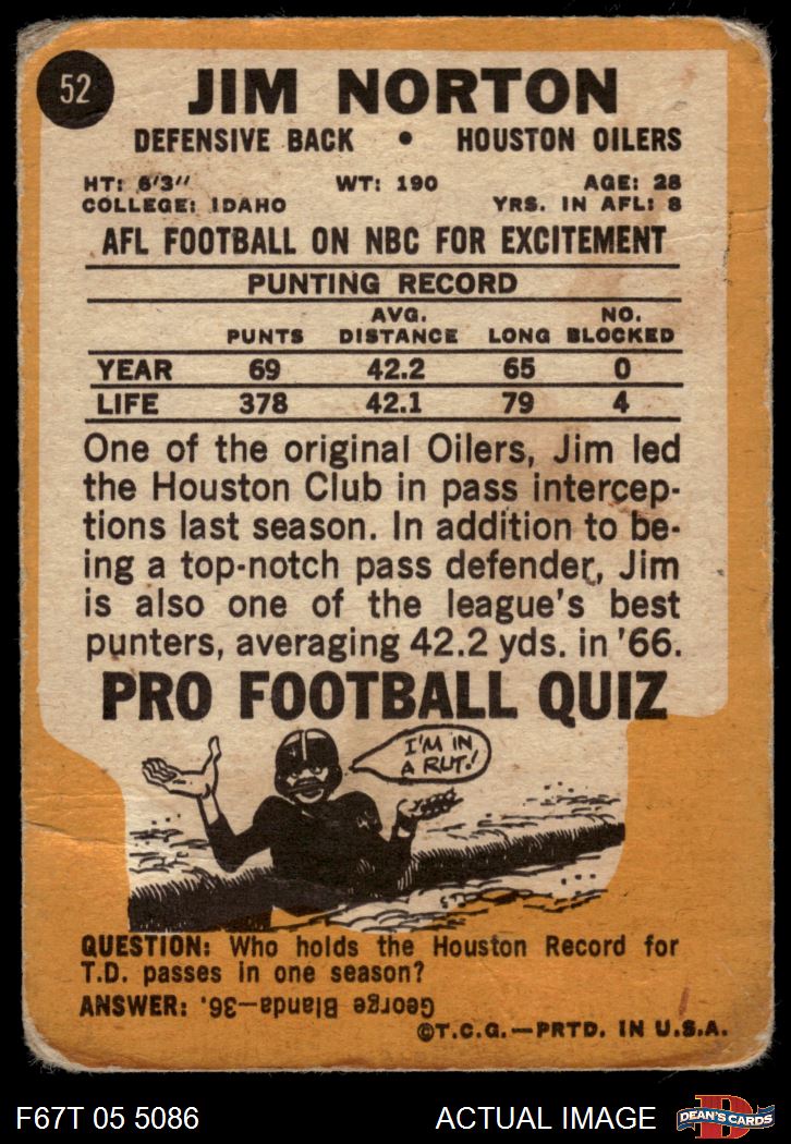 1967 Topps #52 Jim Norton AUTHENTIC