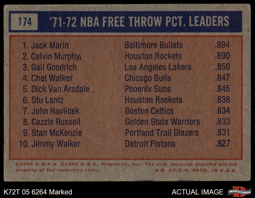1972 Topps #174 - Gail Goodrich / Jack Marin / Calvin Murphy NBA Free Throw Pct Leaders 1.5 - FAIR