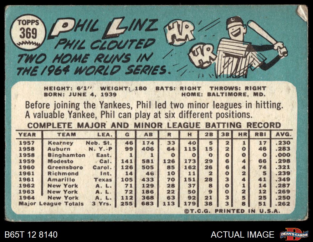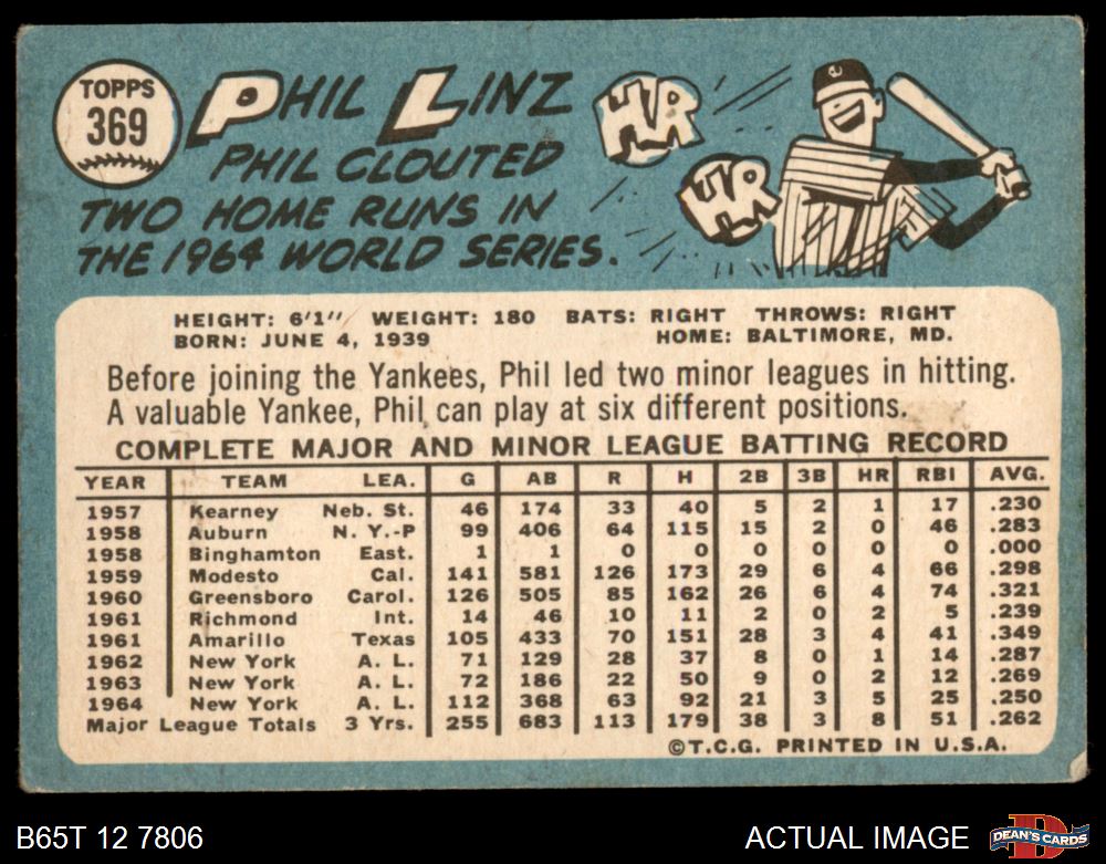 1965 Topps #369 Phil Linz 1.5 - FAIR
