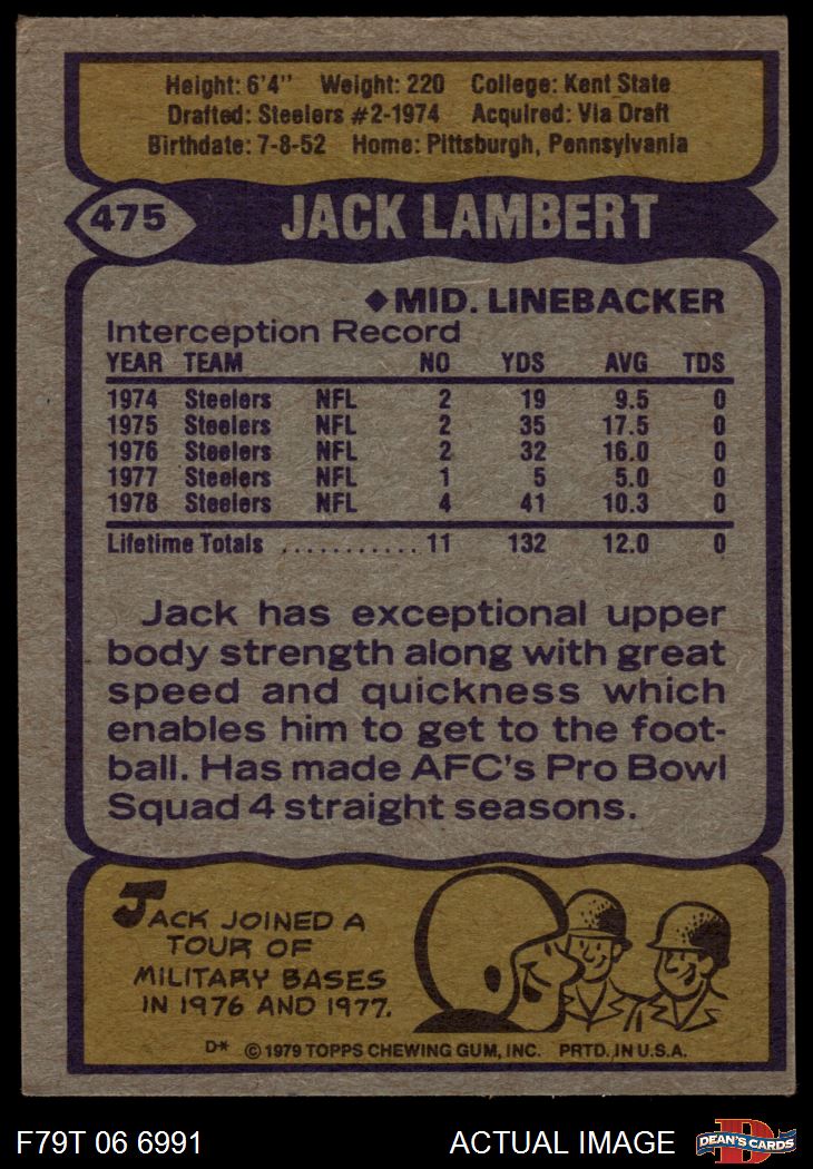 1979 Topps #475 Jack Lambert 3 - VG