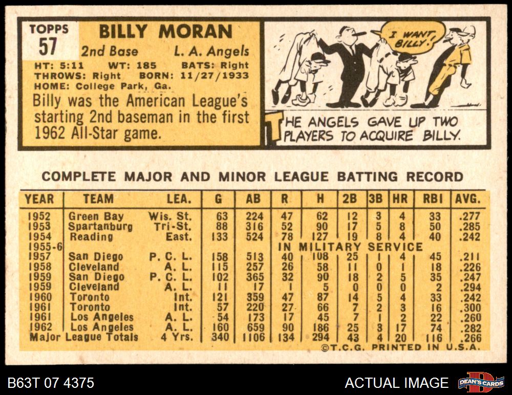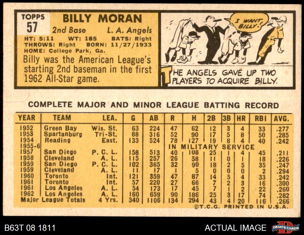 1963 Topps #57 Billy Moran 6.5 - EX/MT+
