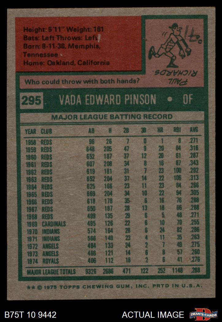 1975 Topps #295 Vada Pinson 5 - EX