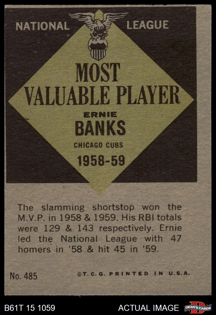 1961 Topps #485 - Ernie Banks Most Valuable Player 3 - VG