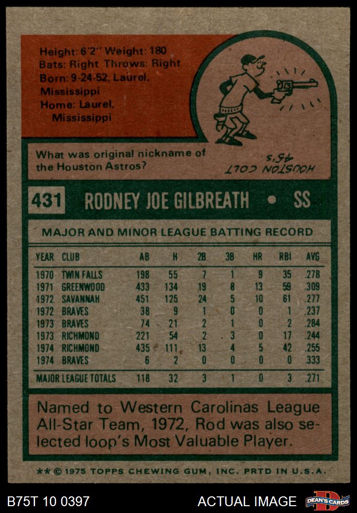 1975 Topps #431 Rod Gilbreath 6 - EX/MT