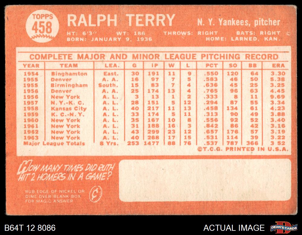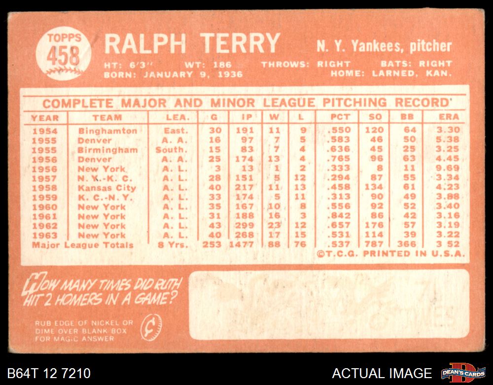 1964 Topps #458 Ralph Terry 1.5 - FAIR