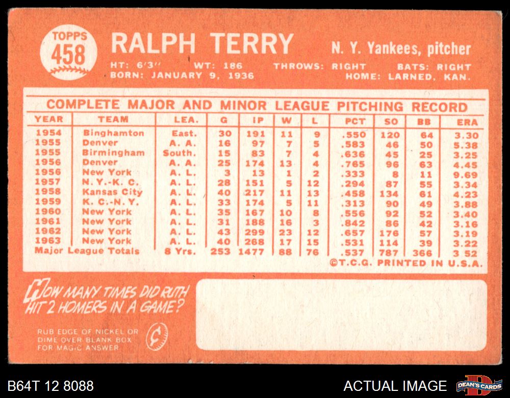 1964 Topps #458 Ralph Terry 3.5 - VG+