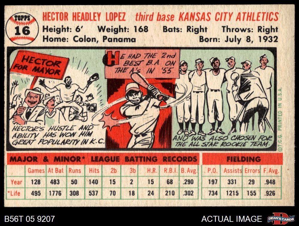 1956 Topps #16 Hector Lopez 6 - EX/MT