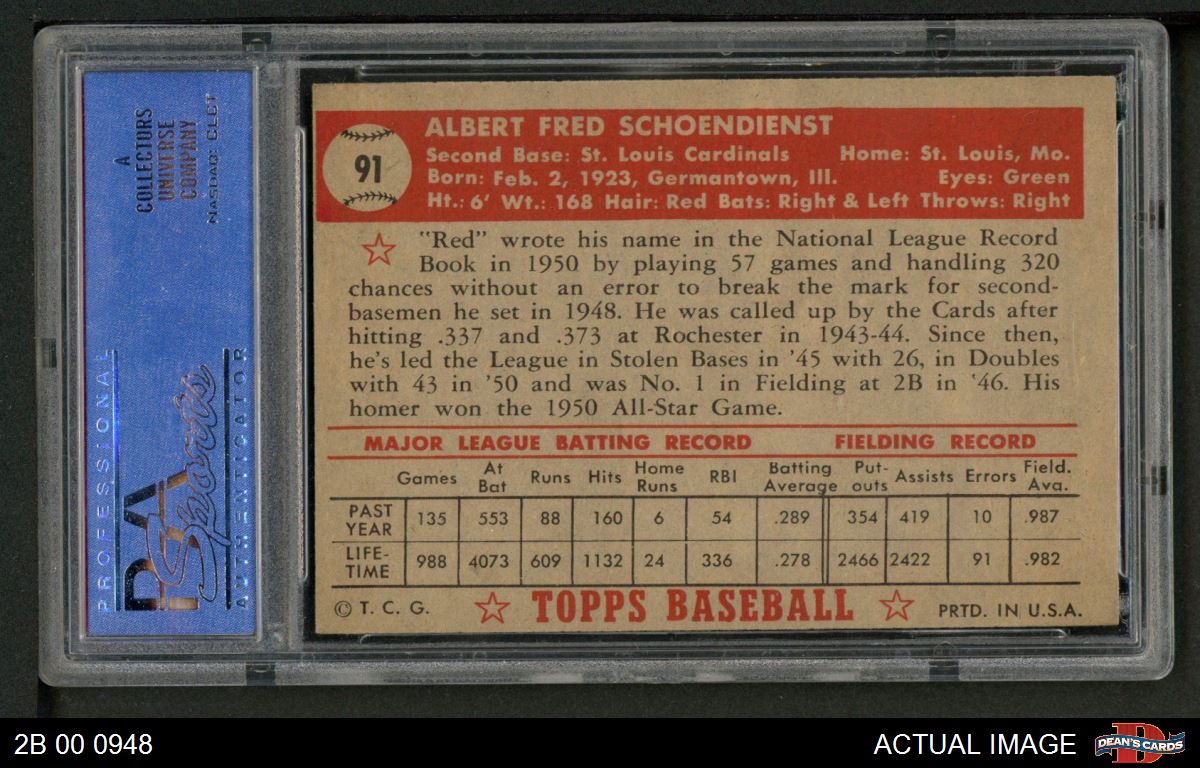 1952 Topps #91 Red Schoendienst PSA 6 - EX/MT