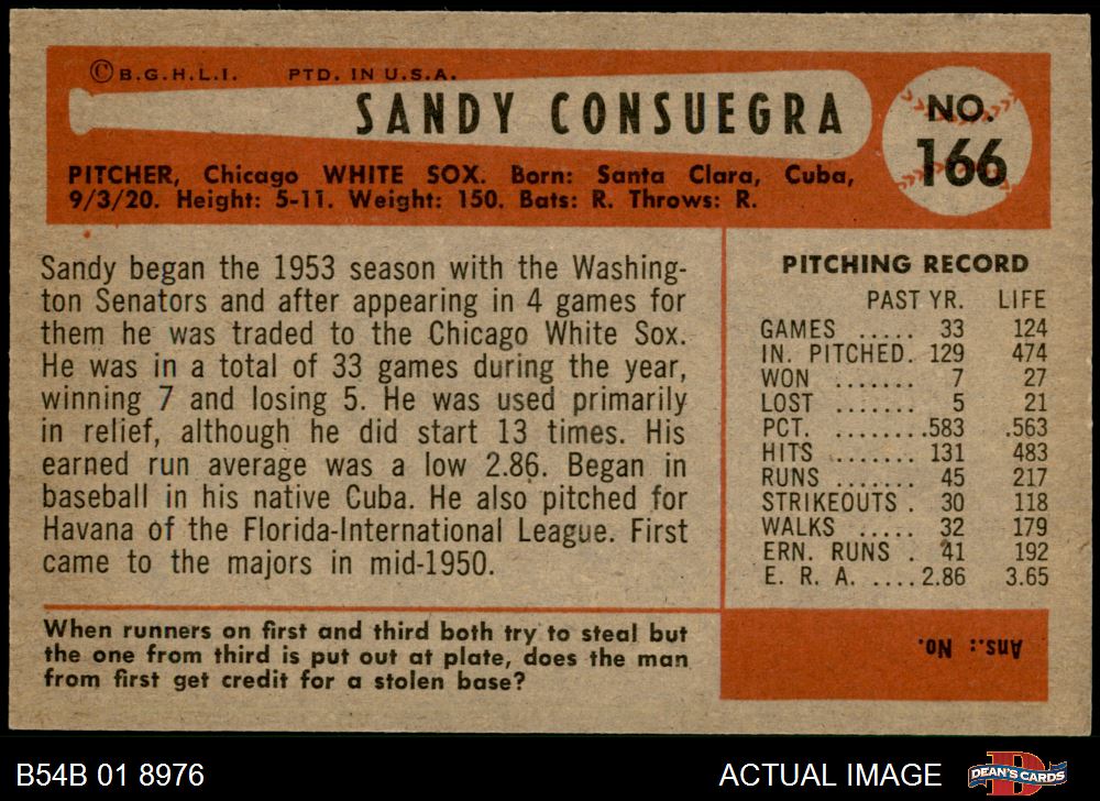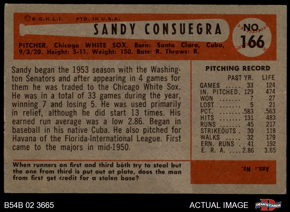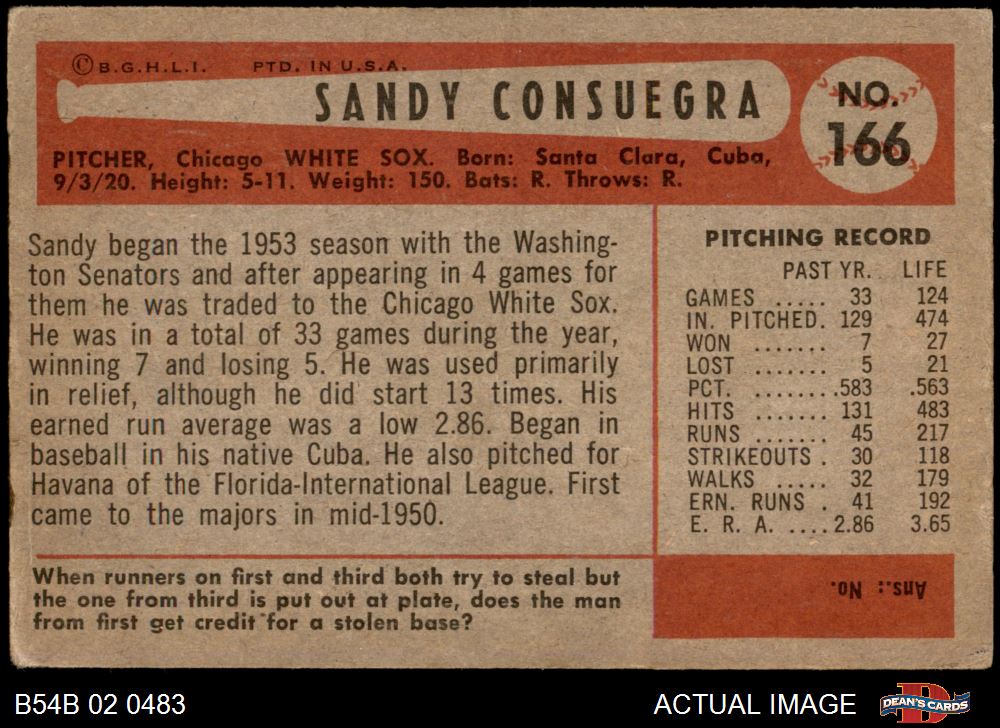 1954 Bowman #166 Sandy Consuegra 4.5 - VG/EX+