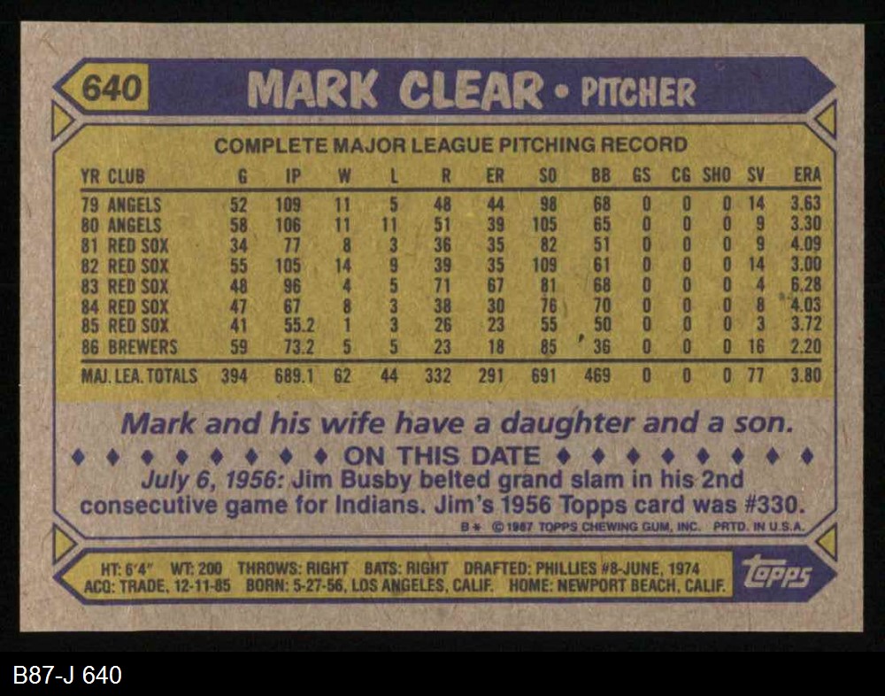 1987 Topps #640 Mark Clear