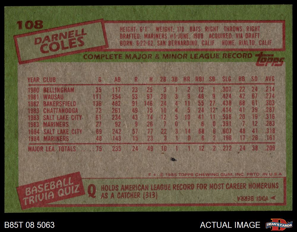 1985 Topps Baseball Cards (11,228 available)1985 Topps Mariners (490 available)