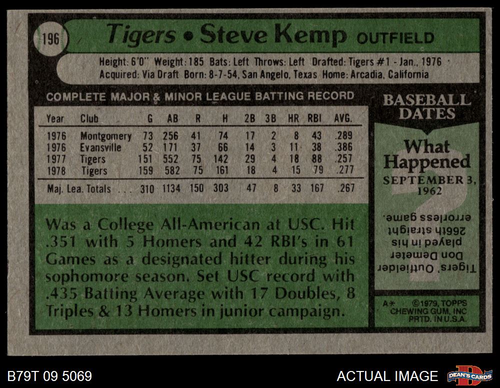 1979 Topps #196 Steve Kemp