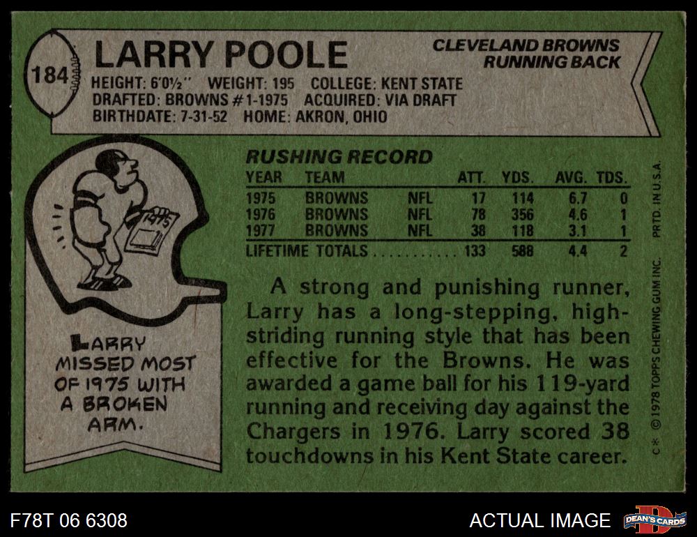 1978 Topps #184 Larry Poole 6 - EX/MT