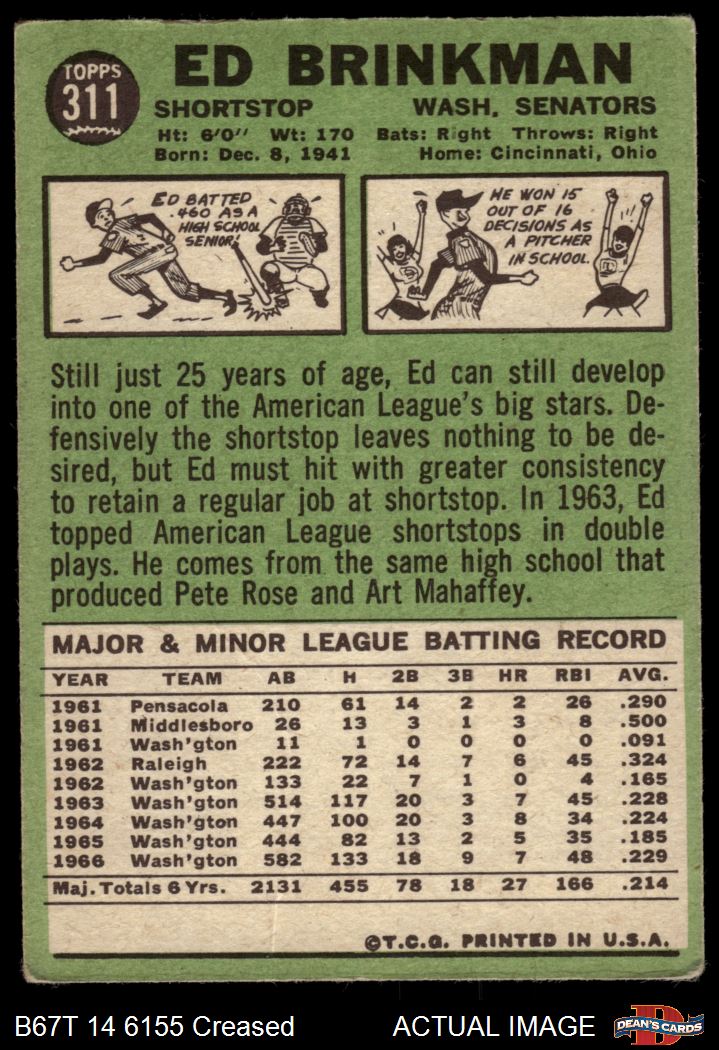 1967 Topps #311 Ed Brinkman 2.5 - GD+