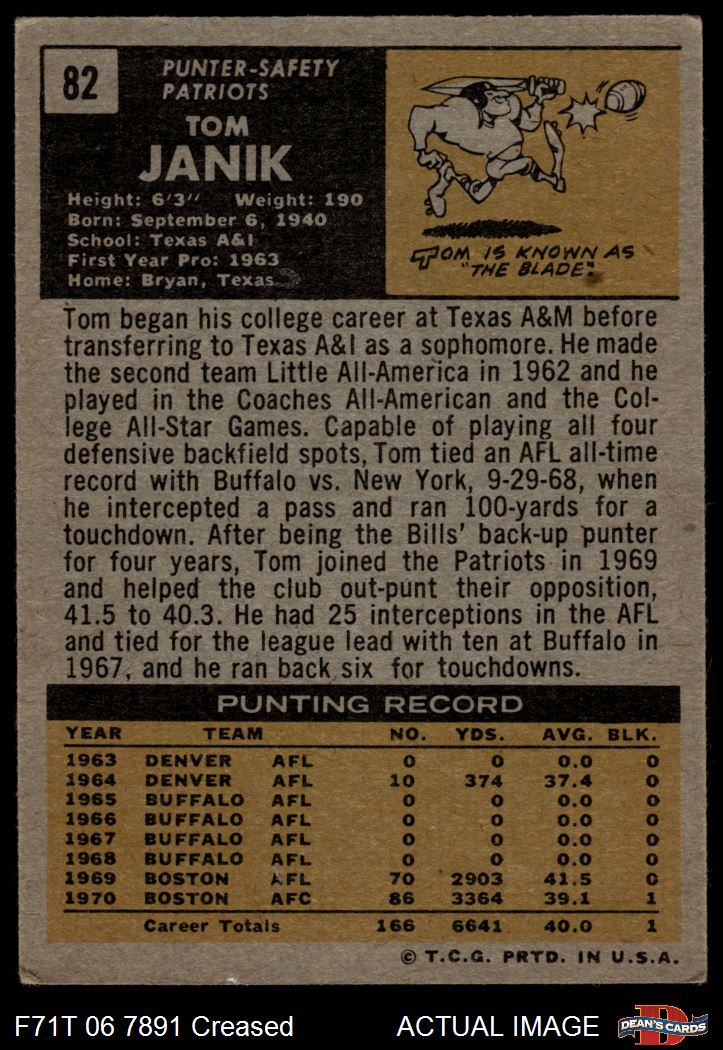 1971 Topps #82 Tom Janik 3 - VG