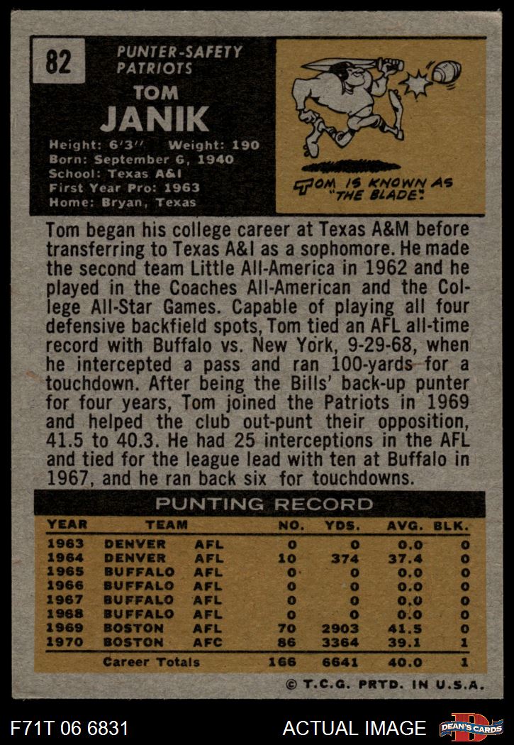 1971 Topps #82 Tom Janik 4 - VG/EX