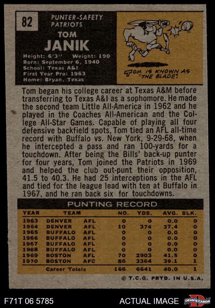 1971 Topps #82 Tom Janik 5 - EX