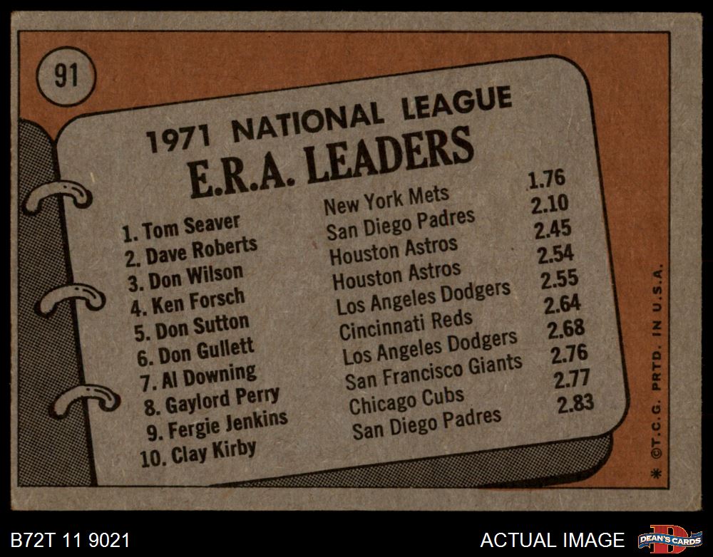 1972 Topps #91 - Tom Seaver / Dave Roberts / Don Wilson NL ERA Leaders 2 - GOOD