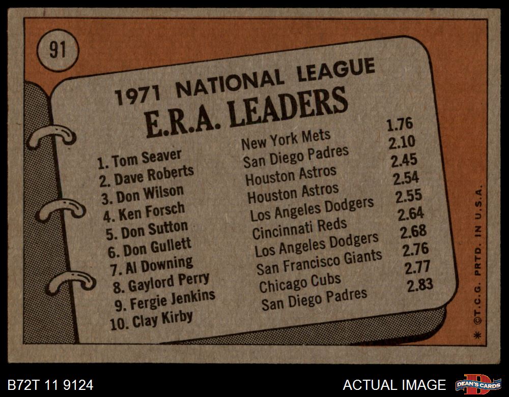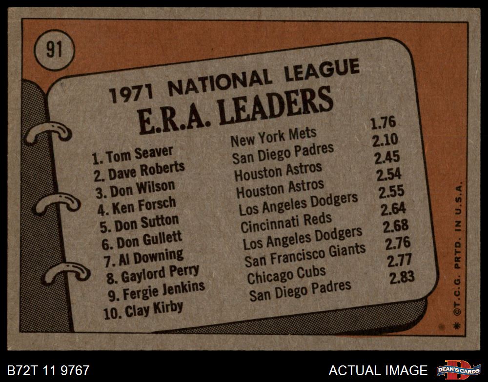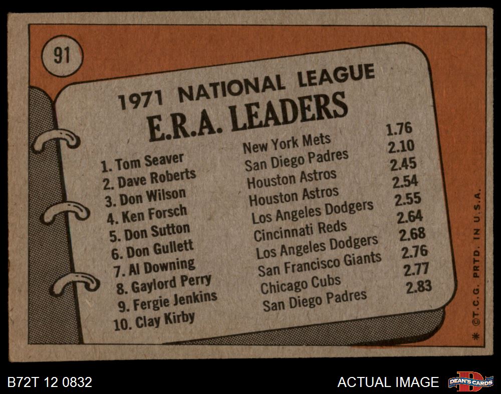 1972 Topps #91 - Tom Seaver / Dave Roberts / Don Wilson NL ERA Leaders 4 - VG/EX