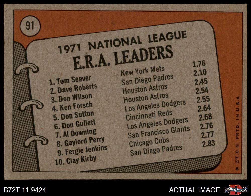 1972 Topps #91 - Tom Seaver / Dave Roberts / Don Wilson NL ERA Leaders 6 - EX/MT